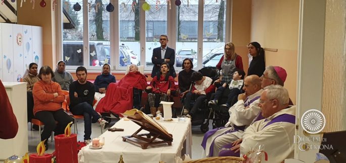 Non è mancata nemmeno quest’anno la visita di monsignor Antonio Napolioni al centro diurno “Casa d’oro”, struttura che ospita dal 2012, a Cremona, minori con gravi e gravissime disabilità, gestita dalla cooperativa “Il cortile” e promossa dall’associazione “Il Cireneo”. Un abbraccio avvenuto giovedì 19 dicembre e che ha preso la forma della celebrazione eucaristica e del saluto pieno di affetto agli operatori e ai bambini del centro. Nella sua omelia, riferendosi alle letture sulle figure di Sansone e Giovanni il Battista, monsignor Napolioni ha parlato di «figli speciali che ci lasciano senza parole, ci ammutoliscono». Come “speciali” e “senza parole” lasciano i bambini che frequentano il centro di via Litta. «C’è rabbia e dolore, in quell’essere ammutoliti: che vita sarà?», ha detto Napolioni. «Ma c’è anche un altro modo di rimanere senza parole – ha proseguito il Vescovo chiamando in causa genitori, parenti e figure professionali di Casa d’oro –: quando gli altri vi vedono e intuiscono che razza di amore provate per loro. Quell’amore non si può raccontare, si vede e basta».