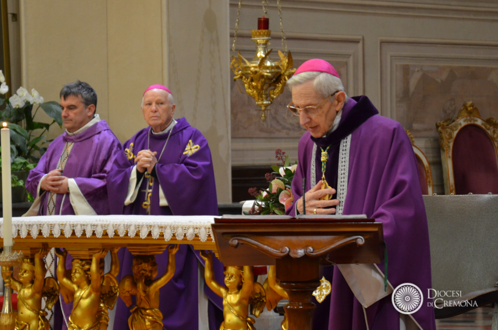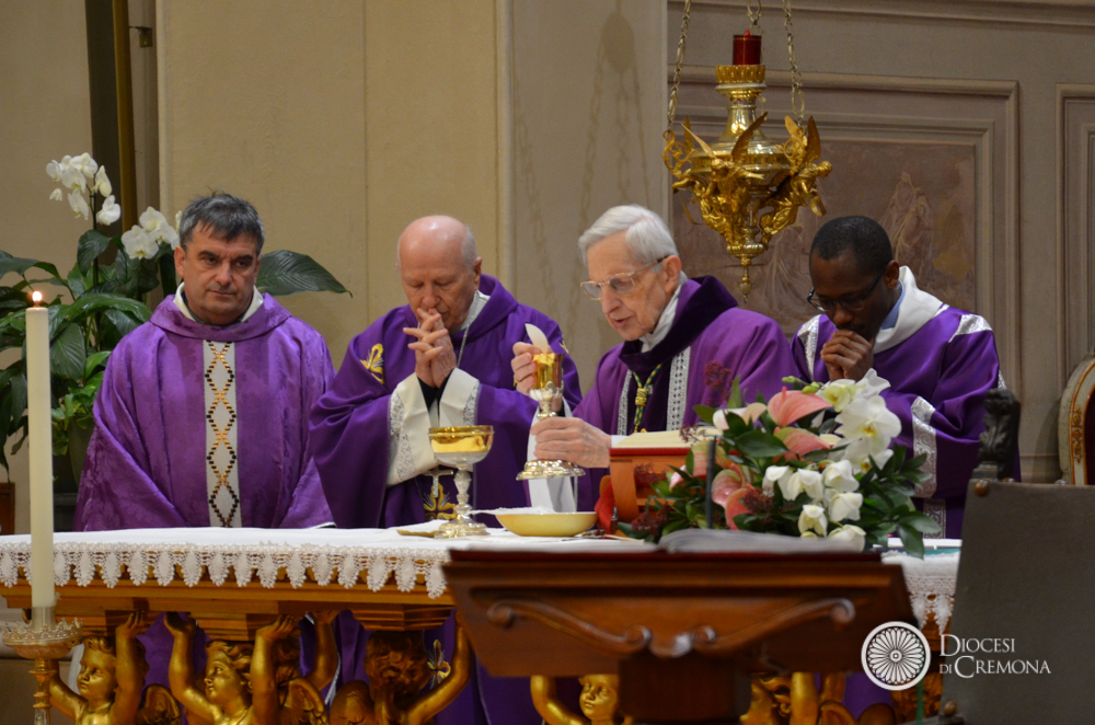 A presiedere la celebrazione è stato il vescovo emerito di Cremona, mons. Dante Lafranconi, che ha portato il saluto e la vicinanza del vescovo Antonio Napolioni che in questi giorni si trova in Brasile, in visita alla parrocchia di Salvador de Bahia dove operano i “fidei donum” cremonesi. Accanto a monsignor Lafranconi anche il vescovo Carmelo Scampa, il vicario generale don Antonio Mascaretti, i vicari episcopali don Antonio Bandirali e don Davide Barili, il parroco di Robecco don Gianmarco Fodri e il collaboratore don Giuseppe Ghisolfi, il cappellano de La Pace don Luigi Mantia, insieme a diversi altri sacerdoti, tra i quali quanti hanno avuto modo di condividere gli anni di ministero don Olivi.