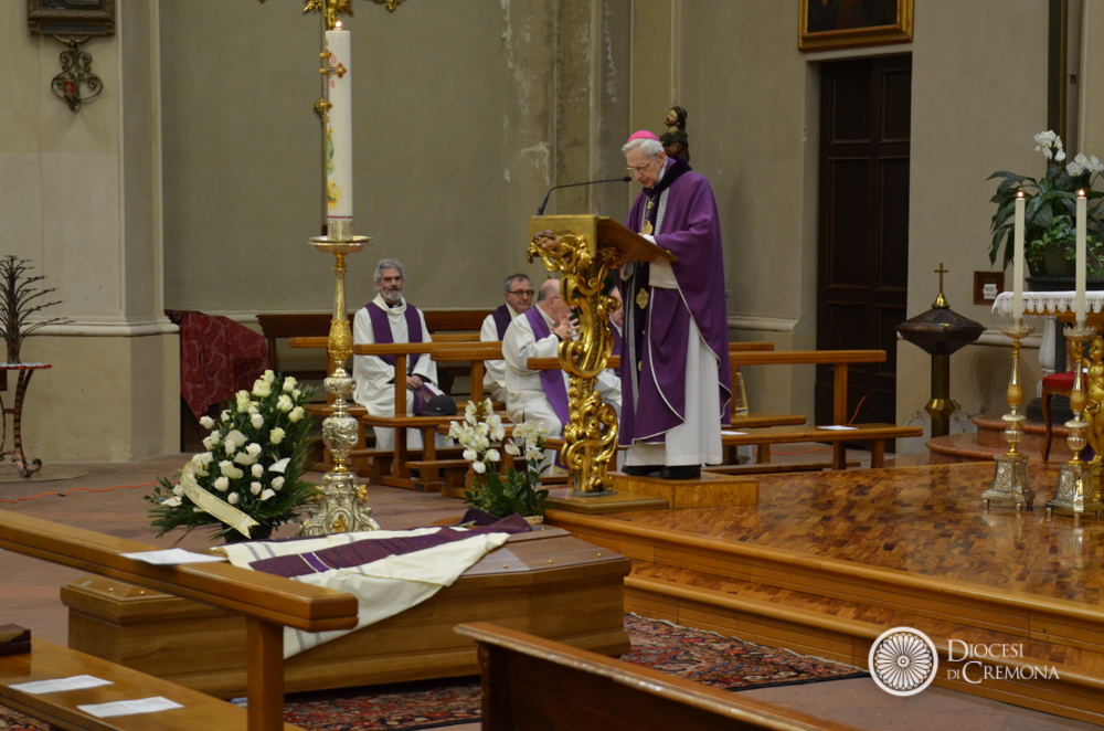 Con sant’Agostino, e il riferimento alle letture del Breviario proprio di questa giornata, Lafranconi ha ricordato che la vita di ciascuno, lunga o breve che sia, è un cammino che porta verso l’eternità. «È per questo – ha spiegato – che puoi cantare camminando, rinnovando giorno dopo giorno la certezza che Dio ti è compagno, che Dio ti aspetta, che Dio ti giudicherà, che Dio ti riempirà della sua stessa beatitudine». E ha concluso: «Con questi sentimenti affidiamo don Mario alla Misericordia di Dio e rinnoviamo noi stessi, grazie anche al suo esempio e al suo insegnamento come pastore, il desiderio e la volontà di essere fedeli al nostro Battesimi e a quella fedeltà di Dio che quotidianamente ci sostiene».
