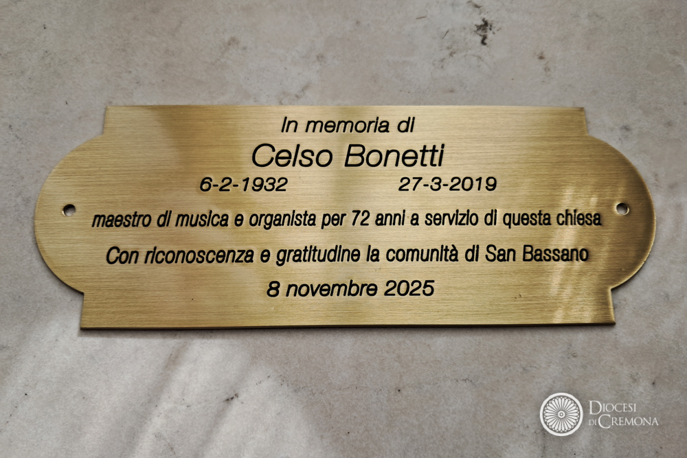 L’8 novembre alle 18.30 si è svolto nella chiesa parrocchiale di San Bassano un concerto in memoria di Celso Bonetti, musicista e organista sanbassanese che ha servito per ben 72 anni la comunità donando alle celebrazioni liturgiche il giusto decoro attraverso l’accompagnamento dei canti con l’organo della chiesa. Il figlio Giuseppe e la moglie Luisa, in collaborazione con la Parrocchia, hanno voluto ricordare questa figura di uomo semplice, generoso e sempre disponibile ad ogni evento liturgico. Il concerto in suo onore ha visto la presenza del Coro Polifonico di Cremona diretto dal maestro Federico Mantovani e accompagnato dall’organista Marco Granata, con la partecipazione del mezzosoprano Giovanna Caravaggio che ha svolto alcuni brani come solista accompagnata dall’organista Andrea Benelli. All’inizio del concerto è stata consegnata una targa in memoria di Celso Bonetti che sarà collocata sull’organo della chiesa di San Bassano come segno di gratitudine della comunità.