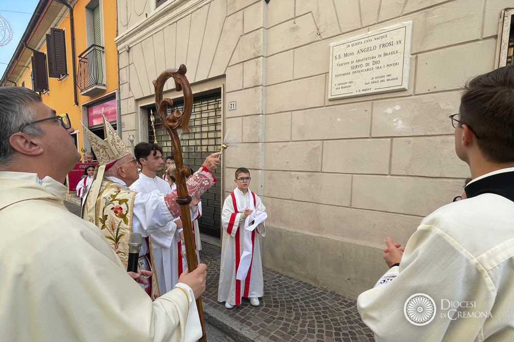 Domenica 9 novembre alle 10 la comunità parrocchiale si è riunita per ricordare i 30 anni della morte del vescovo Angelo Frosi, servo di Dio, nella giornata in cui la Chiesa celebrava il ricordo di coloro che hanno dato una buona testimonianza di fede con la loro vita e che meritano di essere presi come modelli da seguire. La celebrazione della Messa è stata presieduta dal vescovo emerito di São Luís de Montes Belos, il cremonese Carmelo Scampa, che ha conosciuto di persona monsignor Frosi e che ha ricevuto le sue lettere quando condividevano la missione in Brasile anche se in luoghi diversi. Nella sua omelia mons. Scampa ha delineato la figura di Frosi come vescovo impegnato in modo vivace e intraprendente a costruire la diocesi di Abaetetuba, essendo lui il primo vescovo di quella diocesi; vescovo povero tra i poveri con un’attenzione premurosa e instancabile verso i più bisognosi; vescovo evangelizzatore e missionario con la preoccupazione di portare il Vangelo a tutti i villaggi della sua diocesi e incontrare la sua gente. Il vescovo Scampa ha ricordato che il processo di beatificazione di mons. Frosi sta proseguendo secondo l’iter previsto dalla Chiesa e ha ricordato come la sua figura sia esempio di carità e di servizio agli ultimi per l’unità pastorale a lui dedicata. Al termine della celebrazione il vescovo Carmelo Scampa ha benedetto una lapide che è stata posta in ricordo di mons. Frosi sulla sua casa natale e che diventa segno per non dimenticare chi ha vissuto nell’amore verso il prossimo e verso Dio.
