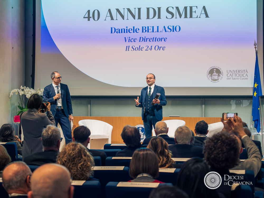 L’evento si è aperto con un video celebrativo, nel quale ha avuto ampio spazio un intervento del professor Galizzi e con i saluti di benvenuto di Annamaria Fellegara, pro-rettore vicario dell’Università Cattolica del Sacro Cuore, e di Marco Allena, preside della Facoltà di Economia e Giurisprudenza, cui ha fatto seguito una parata di testimonianze su “I primi 40 anni di SMEA: persone, ricordi, traguardi”, presentata dal direttore Fornari insieme a Daniele Bellasio, vicedirettore de Il Sole 24 Ore.