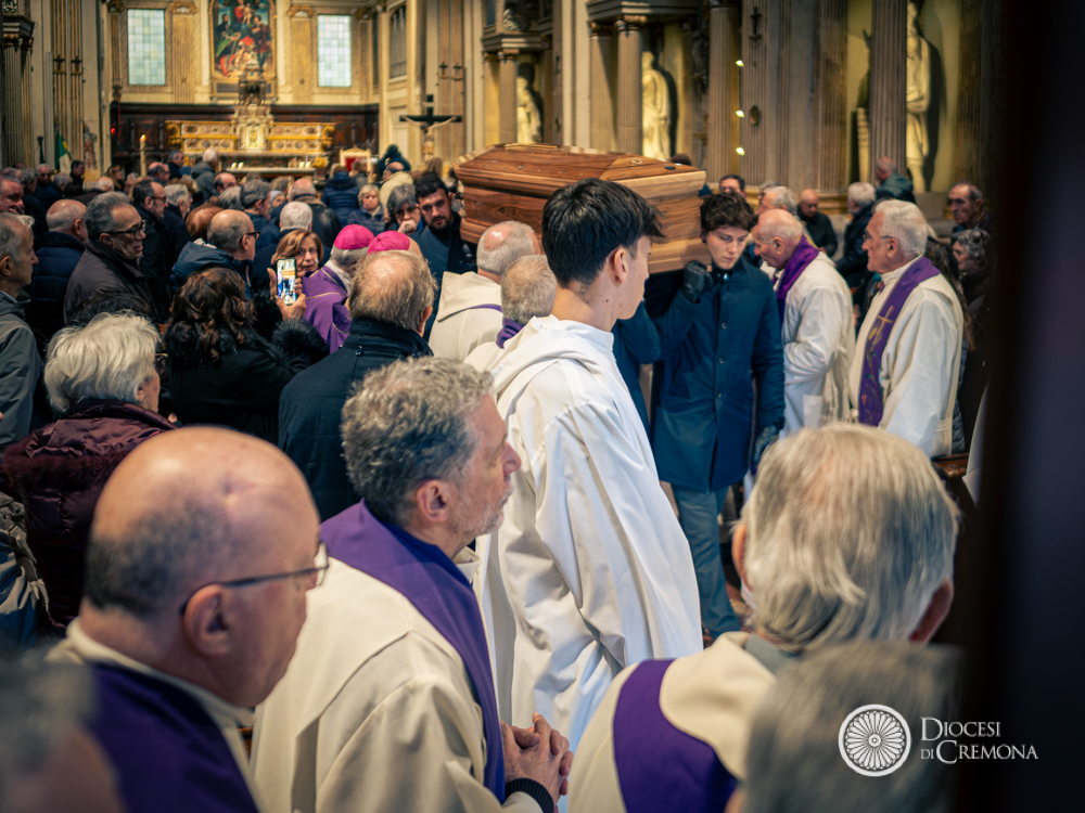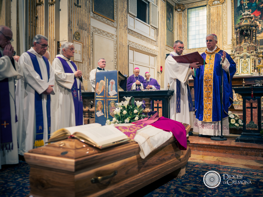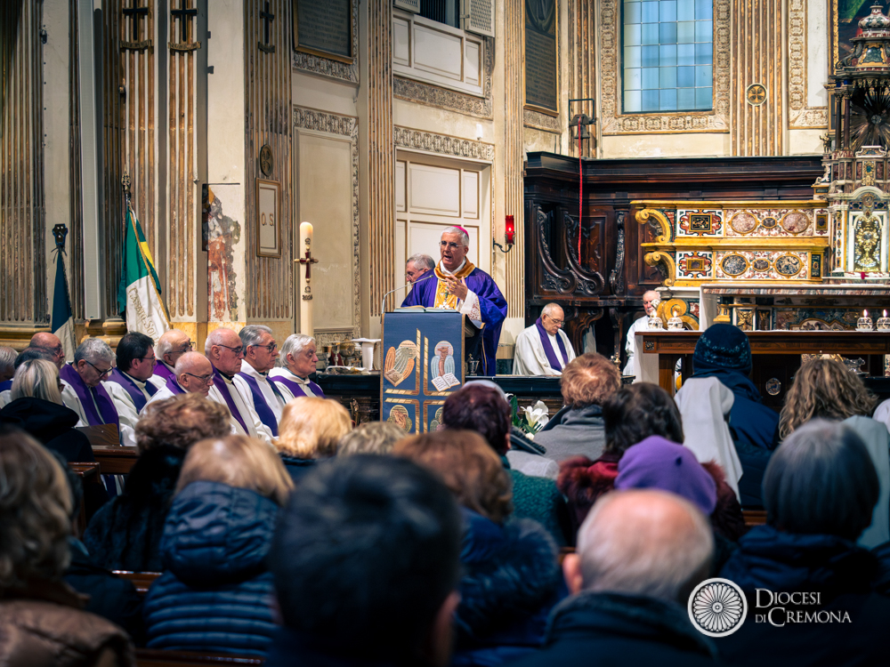 «Noi siamo rivestiti di Cristo, non perché siamo bravi, ma perché siamo uniti. E il dolore ci può unire, anche a volte ci spacca ancora di più. Se lo viviamo da credenti, se lo viviamo nell’umiltà, se riconosciamo di aver bisogno gli uni degli altri, anche il dolore ci unisce. E allora ringraziamo don Giuseppe anche per questo ultimo dono: l’unità tra noi, attorno a lui, in questa liturgia di commiato». Così il vescovo Antonio Napolioni durante le esequie di mons. Giuseppe Soldi presiedute la mattinata di giovedì 19 febbraio nella chiesa di Sant’Abbondio, a Cremona, dove il canonico emerito del Capitolo della Cattedrale fu parroco per più di vent’anni, tra il 1987 e il 2010.