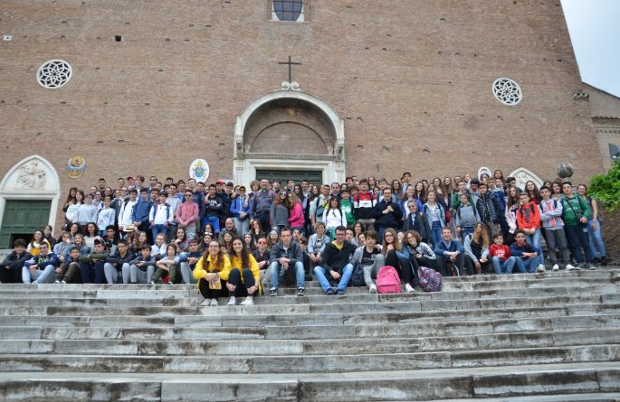 A S. Maria in Cosmedin (quella della piazza della Bocca della verità) lo sguardo si è focalizzato su sant’Omobono, cui è dedicata la chiesa poco distante. Ai ragazzi è stata ricordata l’attenzione per gli ultimi e l’impegno a favore della pace del patrono della città e della diocesi di Cremona, prima di chiedere a loro di evidenziare alcuni gesti, compiuti personalmente o da altri, che hanno permesso di cambiare in bene certe situazioni.
