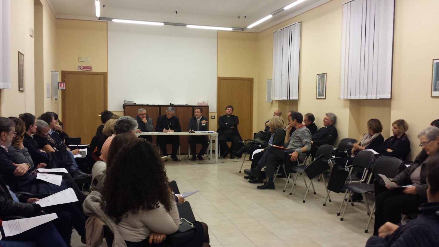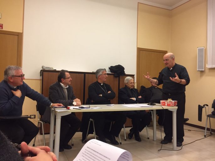 In un dialogo vivace e coinvolgente sono state affrontate diverse questioni, di partire interesse per gli operatori. Quale differenza tra la capacità di ascolto di un prete e di uno psicologo, ci sono dei territori comuni di ascolto? Mons. Napolioni ha portato la sua esperienza di Rettore del Seminario delle diocesi marchigiane. In seminario esistono figure diverse, con ruoli diversi: il Rettore, il padre spirituale, il consulente psicologico. La pluralità di servizi e delle competenze è molto utile, perché apporta aiuti e punti di vista diversi, inseriti all’interno di un unico processo di maturazione. Ci possono essere anche aiuti di tipo psicologico, perché è importante per ogni persona maturare nel tempo un progetto di vita in cui spendere le proprie capacità, in cui realizzarsi. Bisogna tuttavia avere chiaro l’ideale di uomo, di prete, di vita a cui tendere. Fondamentale risulta la formazione permanente ed il mettersi in discussione per migliorarsi continuamente.
