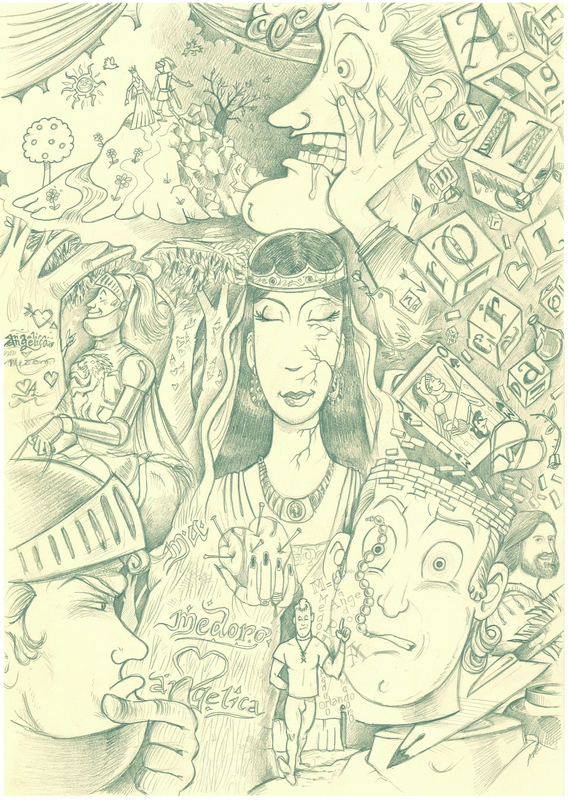 Axel Felisari declinerà i suoi studi e i suoi interessi in psicologia dell’arte in una tavola a matita, che rispecchia le ottave tormentate, che precedono l’esplosione della follia di Orlando, nel canto XXIII, dove si percepiscono le varie esitazioni dell’eroe di fronte alla scoperta dell’amore tra Angelica e Medoro «con cento nodi legati insieme». Si percepirà, dunque, l’idea di un amore in cui quasi nessuno è soddisfatto, di una ricerca continua della propria metà del cielo, dove non risiede solo la gioia, ma si scorgono chiaro-scuri tra i lampi di luce.