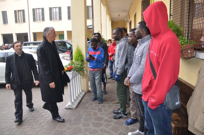 L’ufficio assomiglia ad una trincea. Lui, don Pezzetti, storico direttore di Caritas cremonese, è in piedi al di là del bancone, tra cumoli di documenti e mail stampate, e cerca di affrontare le mille richieste di operatori, volontari e profughi ospiti che bussano alla sua porta. La mole di lavoro è considerevole: tra la Casa dell’Accoglienza e le altre strutture diffuse sul territorio i migranti da seguire sono 370.