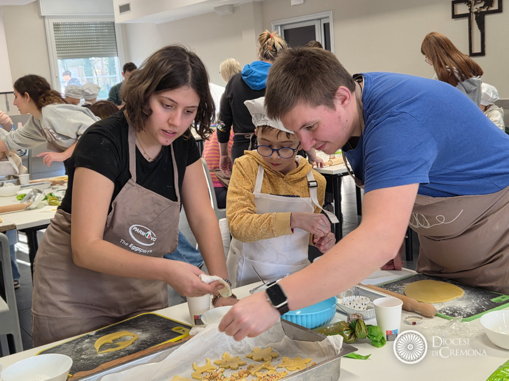 Tra farina, risate e mani che lavoravano fianco a fianco sono nati i “biscotti spaziali” (per riprendere lo slogan dell’evento “Ricette spaziali”), ma il risultato più prezioso è stato vedere ognuno sentirsi parte di qualcosa di speciale: nella Chiesa e nella comunità c’è davvero spazio per tutti!