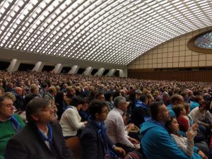 Un importante riconoscimento per il progetto che è un luogo, l’ex seminario dei padri Saveriani a Cremona, diventato uno spazio di incontro, di relazioni virtuose, di cittadinanza attiva. Al Papa Giusi ha raccontato il percorso di rigenerazione urbana che ha interessato la struttura di via Bonomelli, a partire dai valori che per tanti anni la città ha riconosciuto proprio in quel luogo grazie ai padri Saveriani: la missione, la solidarietà, l’educazione dei giovani… Valori che oggi vanno ri–giocati nei diversi ambiti della vita sociale in cui operano i vari gruppi che svolgono proprio al Civico81 le loro attività: 150 cooperanti e 50 consulenti e professionisti prestano ogni giorno il loro servizio a circa 800 cittadini. «Soprattutto – ha spiegato Giusi al Papa – ci occupiamo delle fragilità delle persone perché la crisi ci ha insegnato che chiunque si può ritrovare in una condizione di fragilità ed uscirne può essere molto duro».