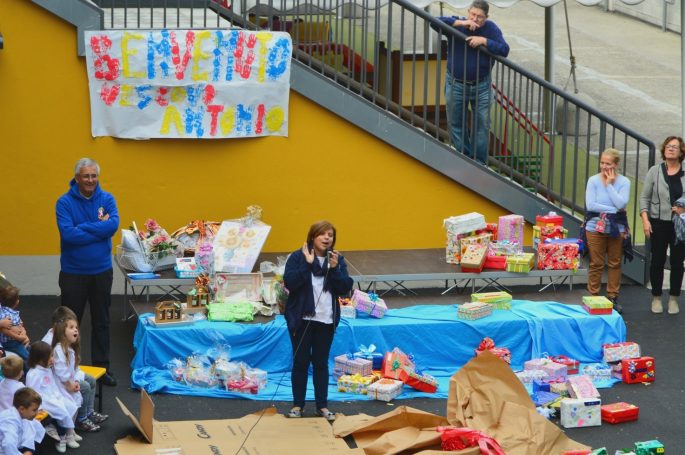 Lunedì 2 ottobre il cortile della Fondazione Vescovi di Calcio, alla presenza dei bambini e delle famiglie della scuola dell’infanzia G. Vescovi e della scuola primaria paritaria S. B. Capitanio, si è “colorato” di tanti pacchi dono realizzati la settimana precedente a scuola da nonni e nipoti insieme, contenenti tutti i motivi per cui essi hanno voluto dirsi grazie a vicenda.