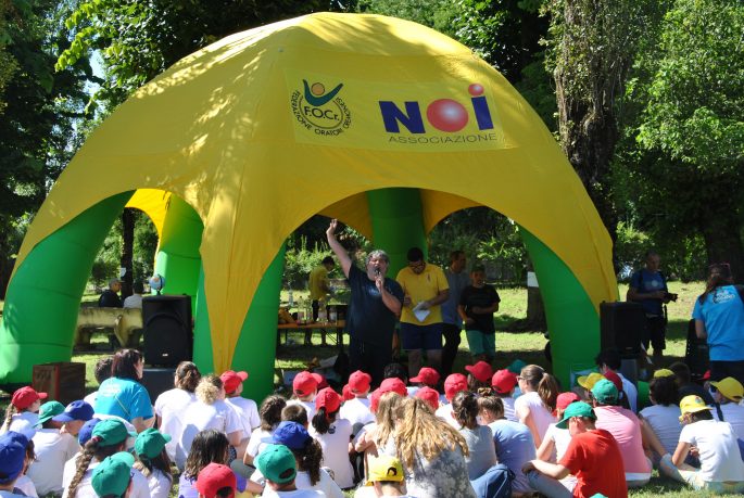 Altra Festa in piazza per questa edizione del Grest 2016 “Perdiqua”. Ancora una volta gli oratori hanno fatto “il giro del mondo”, sfidandosi in gare e prove per ogni abilità. Dopo la prima Festa a Castelverde, è toccato a Crotta d’Adda, che nel pomeriggio di venerdì 17 giugno ha ospitato i Grest della Zona IV nel suo verdissimo parco. Distribuite nel prato, le postazioni di gioco preparate dai volontari della Federazione Oratori: campetti da calcio e da basket, reti di pallavolo, ma anche tiro alla fune, birilli, freccette, fucili con gli elastici e tanti altri divertimenti.