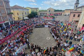Guarda la photogallery completa «Speriamo di essere in tanti». La signora, insieme al marito, attraversa la via principale di Bozzolo quasi deserta per dirigersi verso piazza Europa. La strada è stata sgomberata dalle auto. Bandiere arcobaleno con la scritta bianca “Pace” e della Palestina sono state appese lungo il percorso. Volontari e forze dell’ordine controllano i punti di accesso verso il centro. Il paese … Leggi tutto “Gaza nostra ostinazione”: più di 1.500 a Bozzolo in marcia per la pace nel segno di Mazzolari. Intervento del card. Pizzaballa: «Giustizia, verità e perdono per poter parlare di pace»