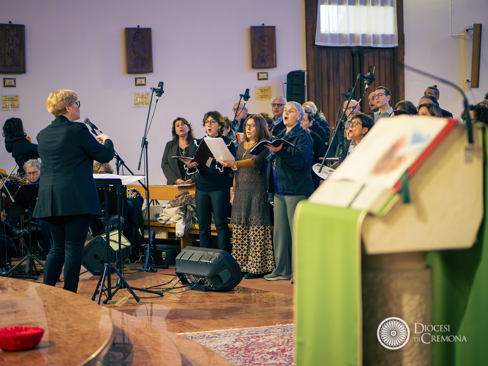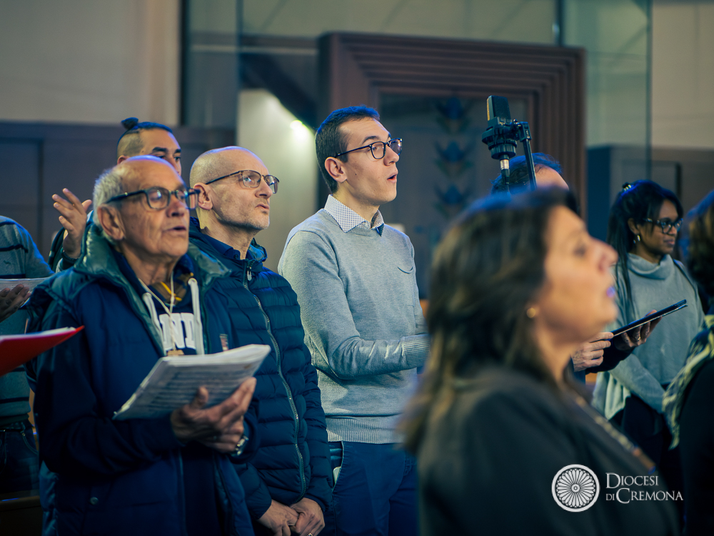 «Gesù ha portato nella storia un ribaltamento di prospettiva che ancora oggi salva il mondo, consegnandoci ragioni profonde di fiducia, di perseveranza, di impegno e di gioia. Per questo cantiamo: non per distrarci, ma per immergerci ancora di più nel cuore di Dio e nel bisogno profondo di speranza che c’è nel cuore di ogni uomo». Così il vescovo Antonio Napolioni, che domenica 16 novembre a Cremona, nella chiesa parrocchiale della Beata Vergine di Caravaggio, ha presieduto l’Eucaristia animata con il canto dai partecipanti al Choral workshop del Gen Verde International Performing Arts Group, iniziato il 14 novembre proprio presso la parrocchia della Beata Vergine e organizzato in collaborazione con il Coro InCanto di Pace dell’unità pastorale delle parrocchie di Persico, Dosimo, Quistro, San Marino, Gadesco, Pieve Delmona.
