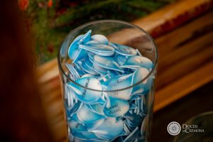 Il segno erano gocce d’acqua, realizzate in plexiglas, e disponibili presso la cancelleria del Santuario e sulla quali ciascuno poteva scrivere il proprio nome o quello di qualcuno che intendeva affidare all’intercessione della Madonna. Ogni domenica le gocce venivano portate all’altare durante la Messa delle 16 e poi deposte al Sacro Fonte, nel luogo esatto in cui il 26 maggio 1432 la Madonna apparve a Giannetta e dove zampillò una fonte d’acqua.