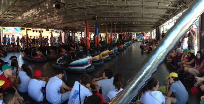 Passando tra roulotte e caravan, e poi giostre in fase di riassetto, i ragazzi hanno raggiunto l’autoscontro Piccaluga, che ha fatto da speciale anfiteatro per il momento di incontro iniziato con la preghiera e proseguito con l’incontro con alcuni degli esercenti spettacoli viaggianti. Un modo sicuramente inedito per affrontare il tema del viaggio del Grest 2016 parlando con chi per lavoro trascorre tutta la propria vita passando da una città all’altra seguendo un calendario ormai quasi consolidato negli anni. I tempi di vita sono quelli dettati dalla professione, che impegna in modo particolare durante la notte. La curiosità dei ragazzi ha aiutato ad approfondire un dialogo che a tratti si è fatto molto confidenziale.