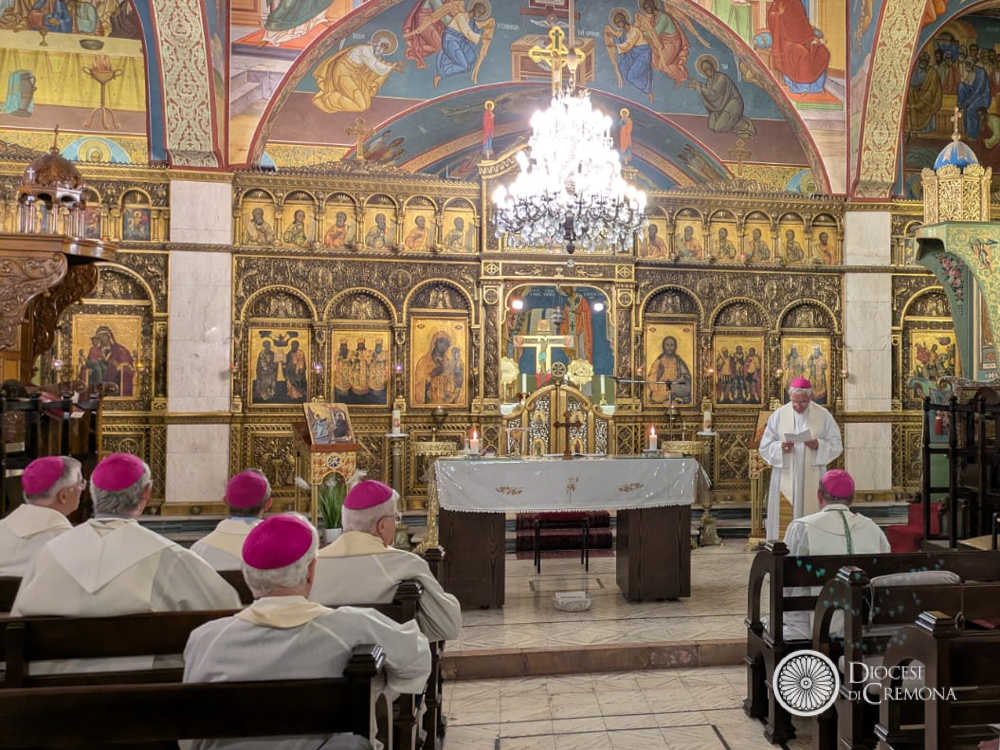 Prima della cena, a dare in qualche modo il via ufficiale al pellegrinaggio era stata l’Eucaristia presieduta da mons. Francesco Beschi, vescovo di Bergamo, nella suggestiva Chiesa dei Melchiti, non lontana dalla Porta di Giaffa e dallo stesso albergo in cui risiedono i 32 partecipanti al pellegrinaggio.