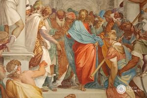 Nel tempio gerolamino Camillo Boccaccino è impegnato inizialmente nella decorazione del presbiterio: oltre alle lesene e ai fregi, nella calotta absidale dipinge Cristo in Gloria alla presenza degli Evangelisti mentre sulle pareti laterali la Resurrezione di Lazzaro e Cristo e l’adultera. Sono raffigurazione che offrono spunti ben evidenti della sua originalità: tra Correggio e Pordenone, passando da Tiziano e Giulio Romano, il pittore delinea fisicità possenti, corpi in movimento, espressività solenni e teatrali, servendosi una tavolozza squillante e vivace.