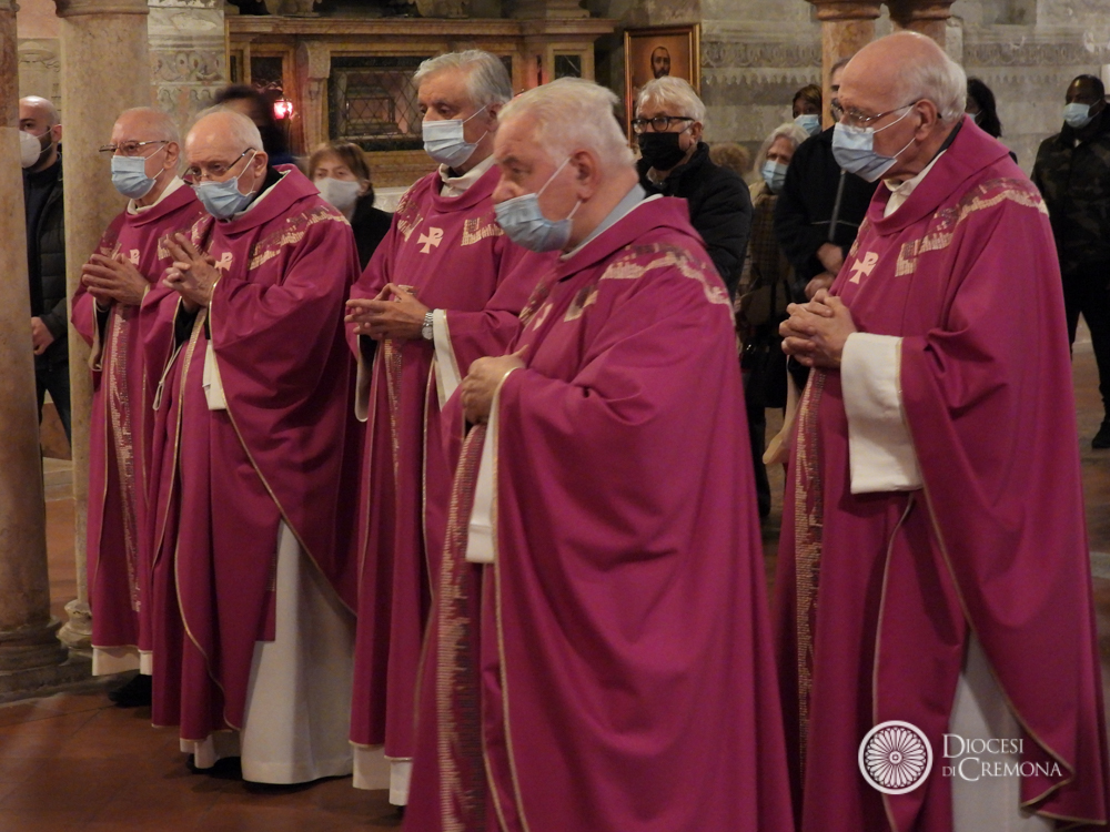 «L’amore ricevuto è tanto e l’amore restituito non basta mai». Con queste parole monsignor Antonio Napolioni ha ricordato i vescovi che nel corso dei secoli hanno guidato la Chiesa cremonese. L’occasione è stata la Messa in suffragio dei vescovi cremonesi presieduta come tradizione in Cattedrale all’indomani della commemorazione di tutti i fedeli defunti. A concelebrare l’Eucaristia, nel pomeriggio di mercoledì 3 novembre, anche il vescovo emerito Dante Lafranconi e i canonici del Capitolo della Cattedrale.