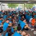 Iniziano i lenti preparativi dei circa 500 giovani cremonesi in vista della Messa e della successiva partenza.