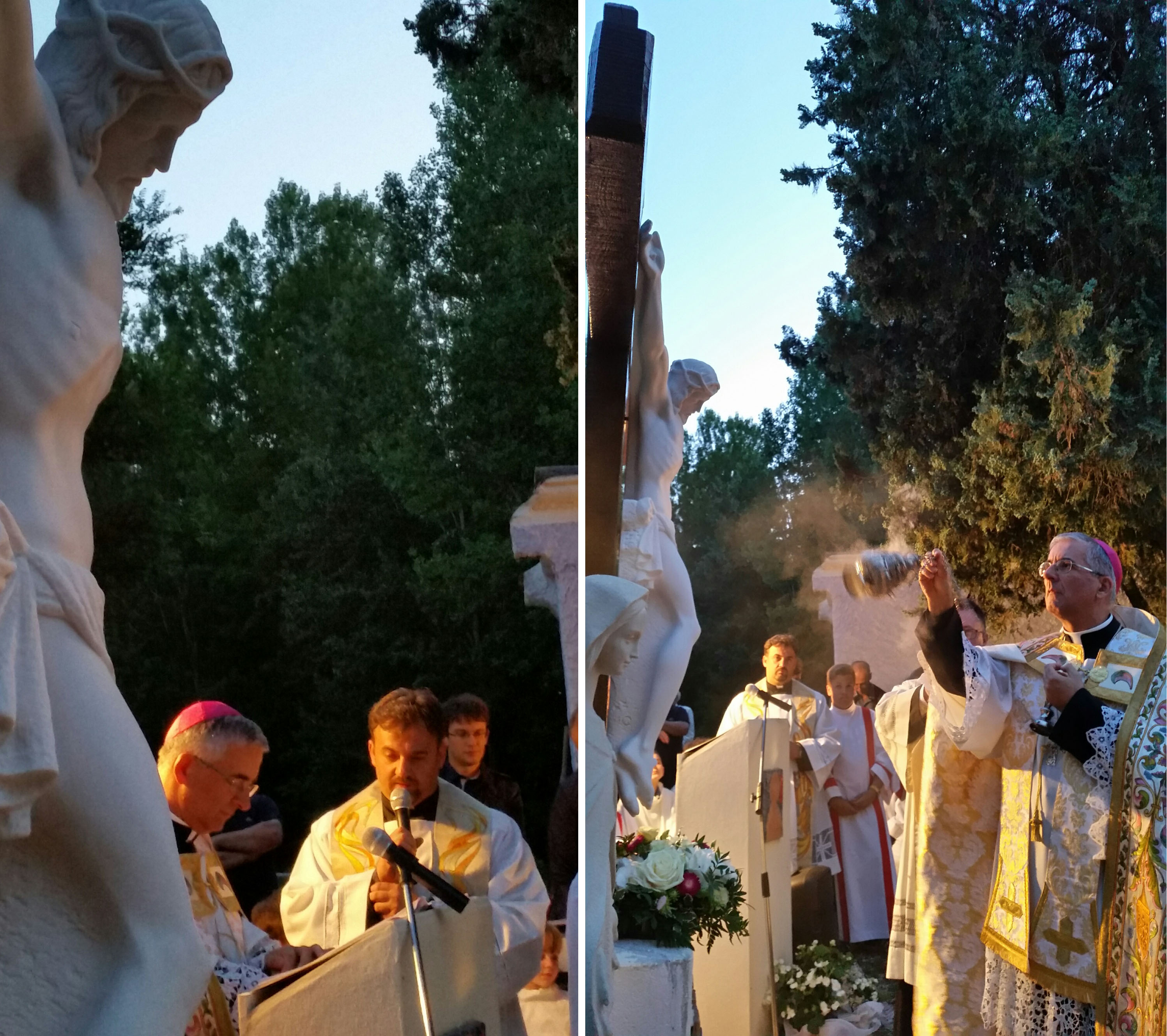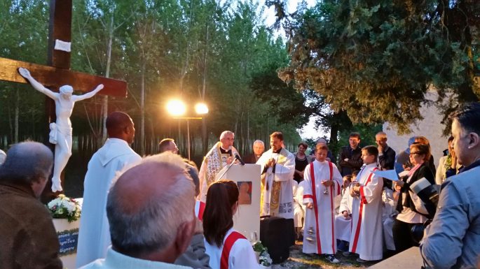 Così è avvenuto anche il 30 maggio alla presenza del Vescovo che prima della processione verso la chiesa parrocchiale ha venerato il Crocifisso posto accanto alla chiesetta, da poco ricollocato dopo l’atto sacrilego avvenuto la notte di capodanno, quando ignoti hanno divelto l’immagine sacra rompendo le braccia del Cristo.