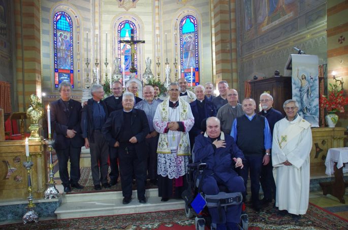 Al termine della celebrazione , la ventina di sacerdoti presenti si è intrattenuta a cena con il Vescovo per una serata di convivialità e di festa per le diverse ricorrenze. Al Vescovo è stato offerto, come dono delle due parrocchie, un servizio di piatti personalizzato con il suo stemma vescovile, gentilmente realizzato dalla Sig.ra Rachele Cè.