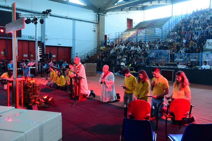 In un silenzio davvero suggestivo è stata quindi posta al centro della scena la croce per un momento di adorazione e riflessione. Ciascun giovane ha potuto scrivere su un foglietto le proprie preghiere, le proprie impressioni, le proprie domande. Contributi importanti che sono stati raccolti e consegnati al Vescovo: anch’essi serviranno a imbastire il Sinodo dei giovani che ormai sta entrando nel vivo.