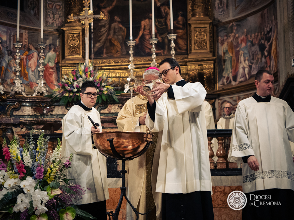 Presieduta dal vescovo Antonio Napolioni e concelebrata dal vescovo emerito Dante Lafranconi insieme al Capitolo della Cattedrale e alcuni altri sacerdoti, la solenne celebrazione ha attraversato i momenti tipici del rito che si pone al centro dell’anno liturgico e della vita cristiana. La liturgia della Parola ha guidato i fedeli nella memoria della storia della salvezza, dalle prime pagine della Genesi fino all’annuncio del sepolcro vuoto. Al canto del Gloria le campane hanno ripreso a suonare, segno di luce e di suoni che hanno dato voce alla speranza cristiana, custodita nel silenzio dei giorni precedenti, e solennizzata dall’Allelluja. Il Fuoco e l’acqua, con cui sono stati battezzati i catecumeni e con la quale l’assemblea è stata aspersa.