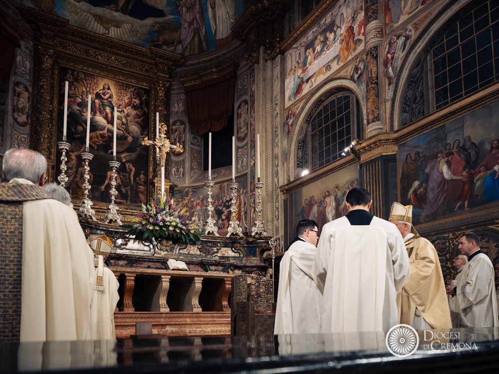 La Pasqua, celebrata nella notte, continua così a diffondersi nel tempo e negli spazi delle vite di ciascuno. È una luce discreta ma tenace, che attraversa le oscurità della storia e rinnova, la speranza dei credenti e del mondo intero, come racconta in modo mirabile l’affresco della risurrezione di Bernardino Gatti che accompagna i fedeli nell’uscita dalla navata centrale della Cattedrale e che quest’anno è tarata con loro anche nelle case, stampata sul cartoncino degli auguri di Papa Leone XIV che al termine della veglia di Pasqua il vescovo stesso ha distribuito come prezioso augurio pasquale.