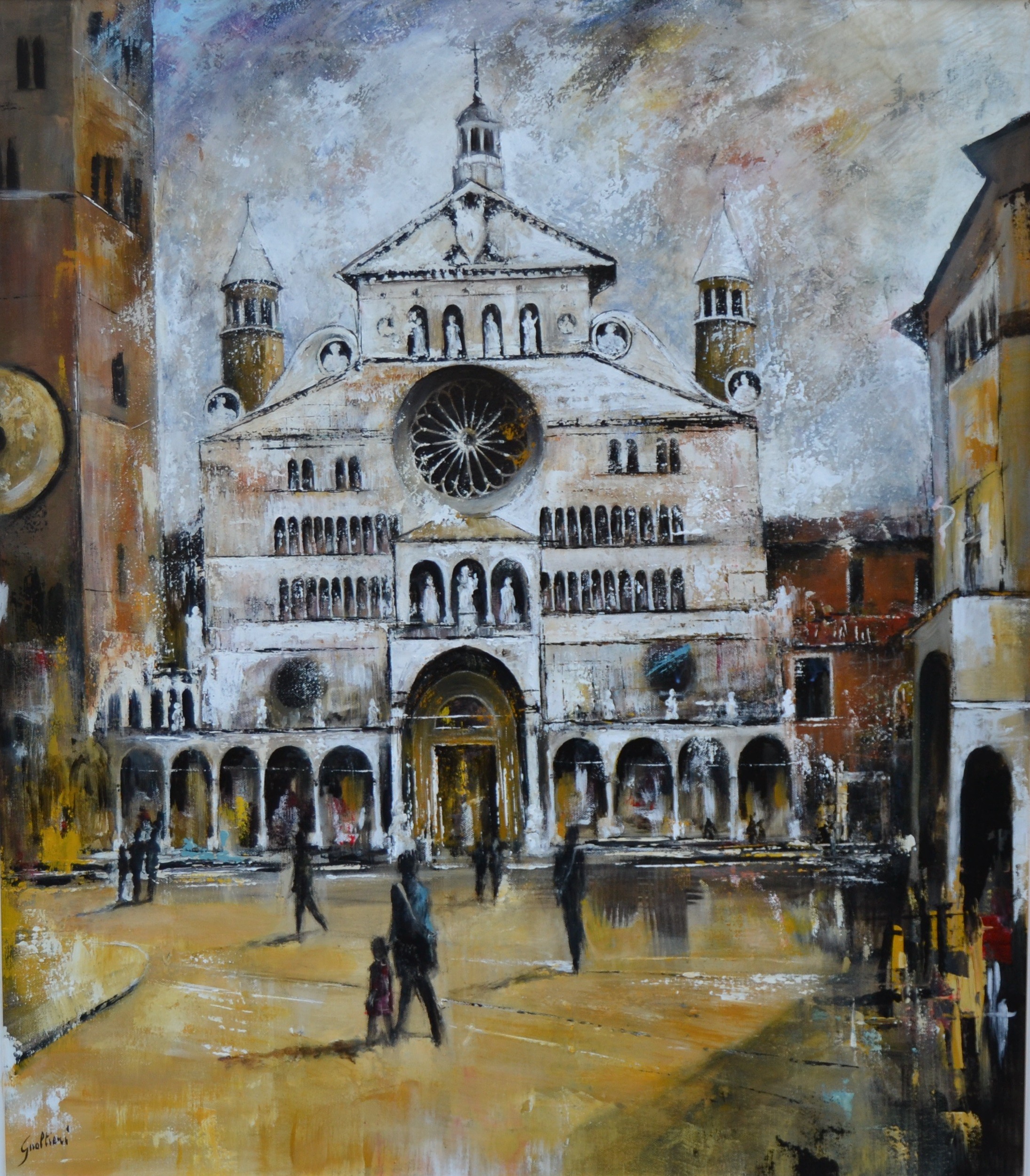 «Quando devo cominciare a dipingere un quadro – spiega l’artista – cerco sempre di non copiare il soggetto così com’è, ma di prendere solo uno spunto per poi reinterpretare quello che vedo: quello che conta è che l’opera riesca ad emozionare chi la osserva, quindi il soggetto diventa solo un pretesto. È importante invece la tecnica, l’uso del colore e la composizione. Quando mi è stato proposto di dipingere il Duomo di Cremona pensavo di poter evitare di rappresentare i numerosi dettagli che lo esaltano lasciandomi andare come sempre ad una interpretazione pittorica più libera attraverso una sintesi. Nel corso della stesura dell’opera, però, mi rendevo conto che il soggetto, così com’era nella realtà, suscitava emozioni a non finire in quanto già di per se stesso un’opera d’arte e che quindi dovevo mantenerne i dettagli cercando solo di renderli un po’ meno leggibili, perciò ho dovuto trovare un compromesso tra la mia creatività e la rappresentazione di una cosa già meravigliosamente appagante».