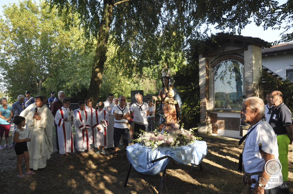 Quindi, una volta sbarcata, la statua, portata a spalla dai “pescatori scalzi” e accompagnata della banda di Canneto sull’Oglio diretta dal maestro Giuliano Volpi, ha percorso processionalmente la via Alzaia, giungendo nel boschetto oltre l’argine per la Messa.