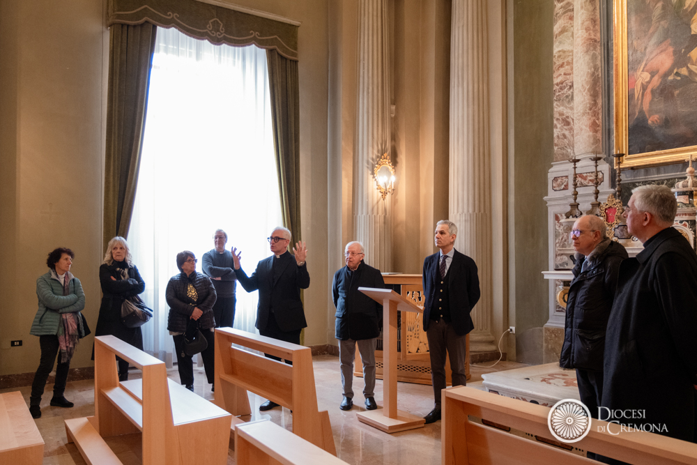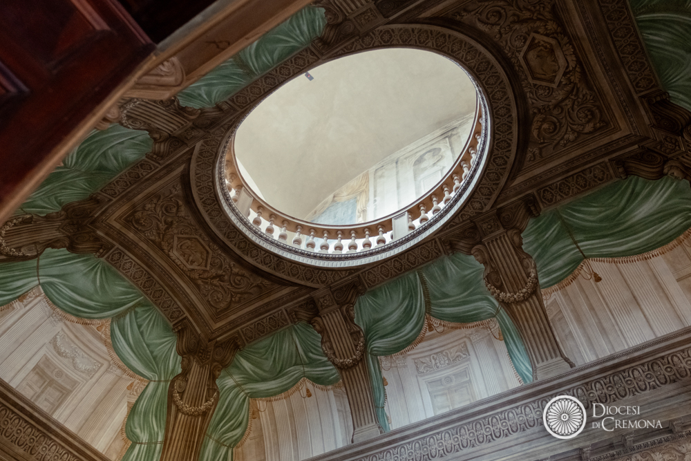 L’intervento, affidato all’architetto Massimo Fertonani e sviluppato in dialogo con la Soprintendenza Archeologia, Belle Arti e Paesaggio di Cremona, Mantova e Lodi, in particolare con il funzionario restauratore Aria Amato e l’architetto Laura Balboni, ha consentito anche la riscoperta di elementi di particolare interesse: «È stato necessario ascoltare il Palazzo – ha spiegato mons. Gaiardi – e abbiamo riportato alla luce parti significative, tra cui una decorazione del caposcala che era rimasta celata e che, grazie anche all’Economato della Diocesi, è stata portata alla luce».