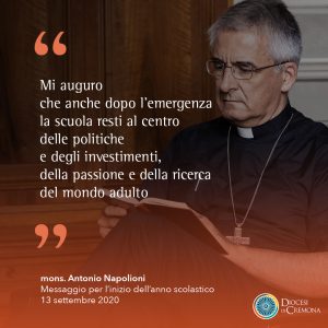 Cari amici, a tutti voi assicuro che siete al centro della preghiera e dell’affetto della comunità cristiana, la cui tradizione di impegno educativo è testimoniata da oratori che stiamo man mano riaprendo in sicurezza, con l’aiuto di giovani e famiglie che ne saranno da oggi in poi ancor più protagonisti e responsabili. Non staremo a guardare da lontano cosa accade nella scuola, ma siamo pronti a collaborare con tutti perché anche in questa difficile stagione fiorisca la gioia di diventare uomini e donne significativi. Il Vangelo è la lampada che rischiara ogni buio, e che dilata la fantasia degli educatori cristiani. La generosità di chi opera nelle scuole paritarie di ispirazione cristiana ne è un attestato.