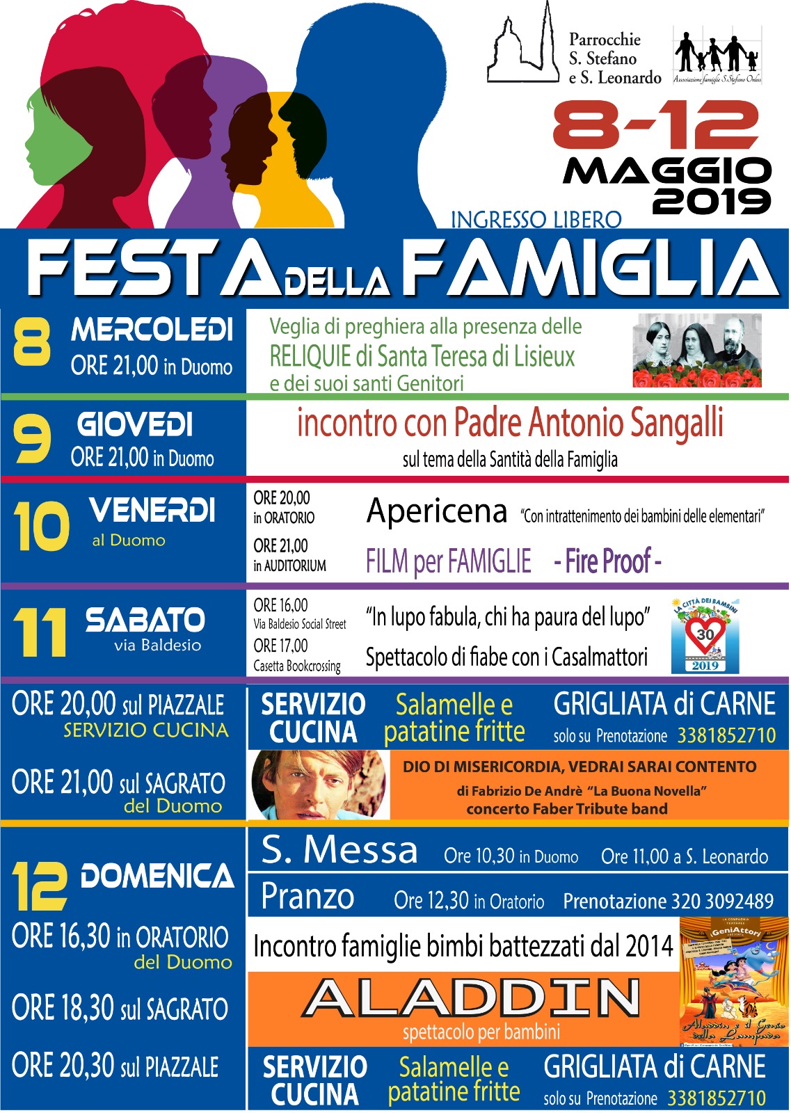 Avrà inizio mercoledì 8 maggio la “Festa della famiglia” delle Parrocchie di Santo Stefano e San Leonardo in Casalmaggiore. Appuntamento importante nella vita della comunità, la festa venne introdotta da don Marco Tizzi negli anni ’80 e, dopo una pausa durata alcuni anni, venne reintrodotta con l’arrivo di don Marco Notarangelo, vicario parrocchiale responsabile anche del Gruppo famiglie.