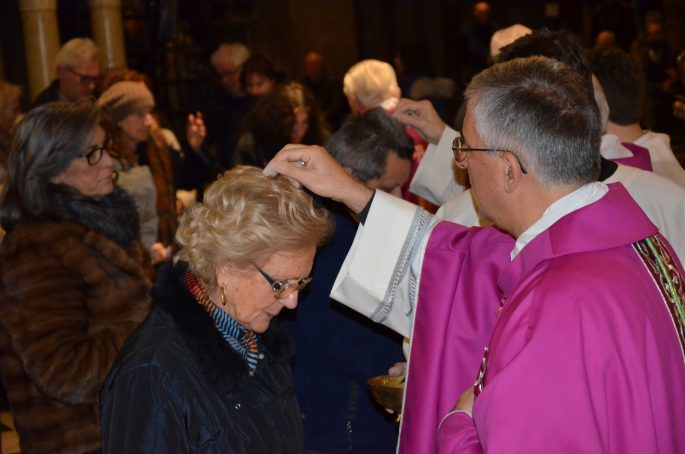 Dopo l’omelia il Vescovo ha benedetto le ceneri, che subito dopo i sacerdoti hanno posto sul capo dei fedeli presenti insieme alle parole “Ricordati che sei polvere, e in polvere ritornerai” e “Convertitevi, e credete al Vangelo”.