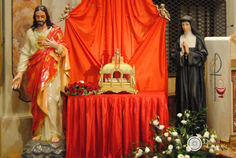 In occasione del Giubileo dei 350 anni delle apparizioni del Cuore di Gesù a santa Margherita Maria Alacoque in Francia, a Paray-le-Monial, la reliquia della santa visitandina sarà in Italia che, tra le varie tappe, raggiungerà anche il Monastero della Visitazione di Soresina. La devozione per il Sacro Cuore e per santa Margherita Maria Alacoque torna a Soresina dopo la peregrinatio del 2010 (in foto).