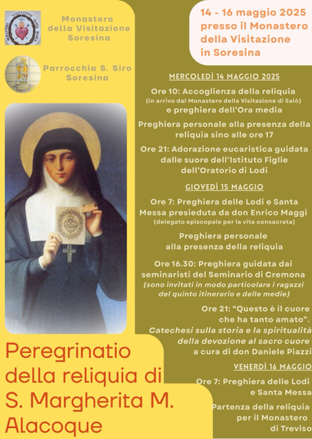 Soresina, dal 14 al 16 maggio la Peregrinatio della reliquia di santa Margherita Maria Alacoque