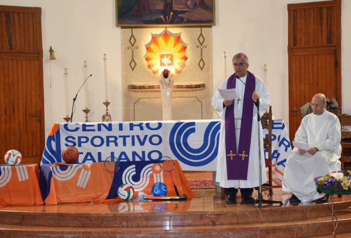 «Anche nella prove più difficile – ha continuato il Vescovo – c’è da essere sportivi». Un termine, quest’ultimo, da non confondere con la superficialità, quanto piuttosto la capacità di avere una marcia in più. Identificata nelle cinque lettere di sport. Anzitutto “S” come il Signore che fa dire di sì alla vita. Quindi “P” come potenza, primi e il di più che fa più bella la vita. Poi la “O” di osare ogni giorno «la nostra vita, la nostra responsabilità e quel pezzetto di gioco di squadra». E ancora la “R” di risultati, riuscita, realizzazione di sé e ridendo di sé, senza il rischio di prendersi talmente sul serio da montarsi la testa. E qui un chiaro avvertimento al CSI per uno sport che deve brillare per serenità. Infine la “T” di tutti: sport per tutti e con tutti.