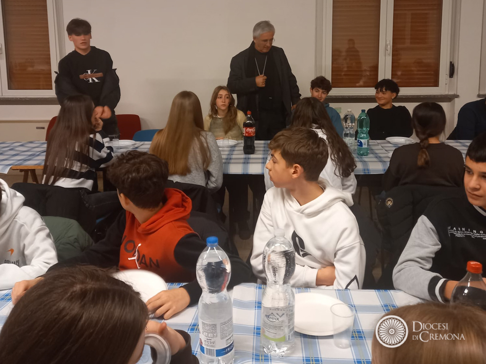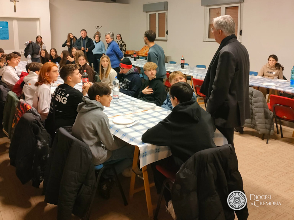 «C’è stato un confronto libero con loro su tanti temi di carattere sociale e civile, senza nascondersi le criticità e potenzialità della zona, le fatiche della collaborazione e del mettere in rete i servizi – ha detto ancora don Marciò –. Il vescovo ha saputo dare una speranza di fronte ai problemi della denatalità e dello spopolamento che sta vivendo l’hinterland cremonese, evidenziando come le comunità siano ancora vive e desiderose di mantenere il legame con il territorio. Da qui il confronto si è protratto sulle sfide del mondo educativo, che sono state anche accennate e condivise con la sessantina di ragazzi delle medie e Superiori. Il vescovo è stato molto disponibile e aperto durante il momento di ascolto reciproco, a partire delle domande che i ragazzi avevano preparato e che è stato l’occasione per condividere con loro un momento di riflessione».