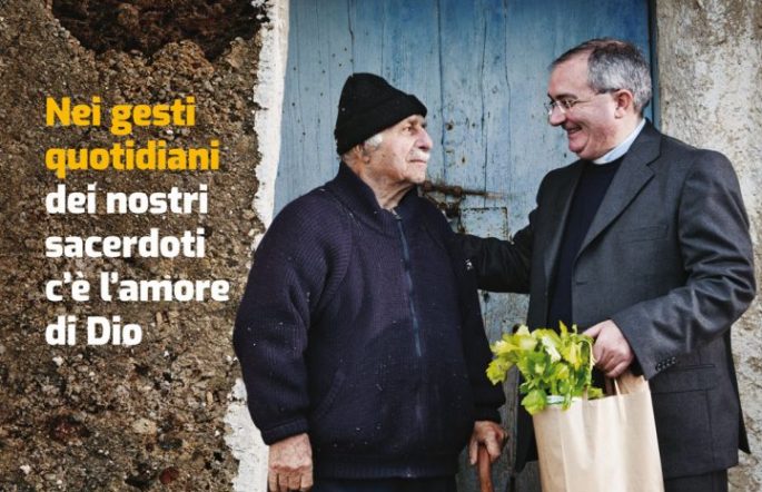 “Nei gesti quotidiani dei nostri sacerdoti c’è l’amore di Dio. Sostieni la loro missione con un’Offerta. Un abbraccio fraterno, una parola di conforto, un momento di preghiera condivisa…con i loro gesti i nostri sacerdoti ci trasmettono l’amore di Dio. Tutti loro vivono con noi, ogni giorno, una Chiesa solidale e partecipe.” Questo il senso della 31esima Giornata nazionale delle offerte per il sostentamento dei sacerdoti diocesani che si celebra il 24 novembre, domenica dedicata a Cristo Re.