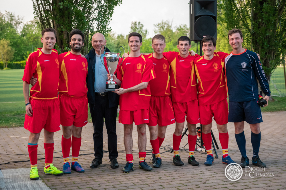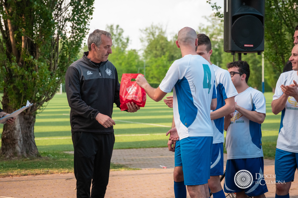 Attorno alla statua di san Giovanni Bosco, posta proprio al centro del Centro sportivo Arvedi, si sono quindi svolge le premiazioni. Presente anche l’allenatore della prima squadra della Cremonese, Marco Gianpaolo, insieme al cappellano don Alberto Mangili. Il mister grigiorosso, a nome della società, ha regalato a tutti i Seminari una maglia della Serie A. Quindi il premio a Brescia, terza squadra classificata.