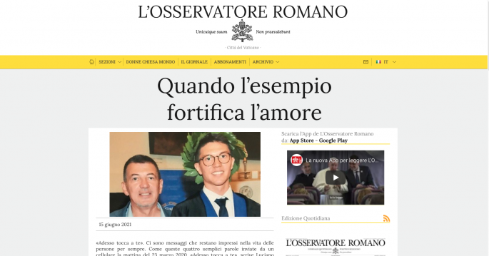 Martedì 15 giugno L’Osservatore Romano ha dedicato spazio al dottor Luciano Abruzzi, stimato neurologo morto durante la prima ondata della pandemia. Alle colonne del quotidiano romano, il figlio Dario affida il ricordo del padre. Un uomo, dice, capace di mettersi sempre in discussione e di non sentirsi mai arrivato. Un medico sempre disponibile, specie con i malati.