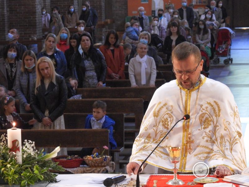 Qui la fotogallery completa «Христос воскрес! Воістину воскрес! [Cristo è risorto! È veramente risorto]» con questo annuncio è stata annunciata la Pasqua a Cremona anche in lingua ucraina, presso la chiesa parrocchiale di Sant’Ambrogio nel pomeriggio pasquale di domenica 17 aprile 2022. Alla Santa Messa di Pasqua celebrata secondo il rito bizantino da don Vasyl Marchuk, sacerdote cattolico ucraino residente a Bergamo, hanno partecipato … Continue reading