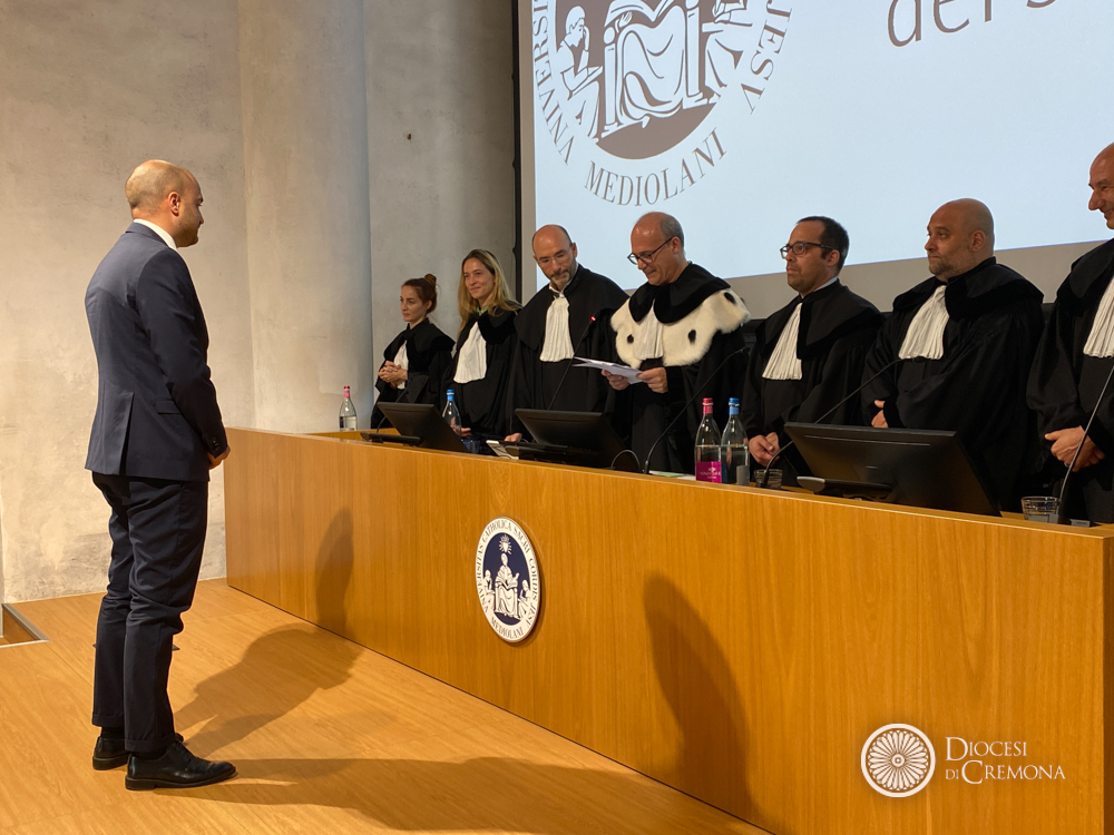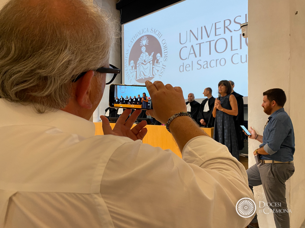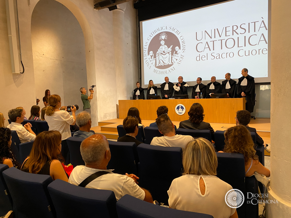 Nel Campus Santa Monica, alla presenza del sindaco di Cremona Gianluca Galimberti e dei professori dell’ateneo, la preside della Facoltà di Economia e Giurisprudenza Anna Maria Fellegara ha presentato la cerimonia. «Siamo convinti – ha esordito – che con il collegio dei docenti, le strutture e i servizi di questa Sede siamo riusciti a progettare e a organizzare un percorso formativo che rende disponibili per il nostro Paese e per la nostra comunità donne e uomini di cui abbiamo bisogno, formate sui temi dell’innovazione e dell’imprenditorialità. E siamo certi – ha quindi proseguito la Preside – di aver contribuito alla formazione di donne e uomini che sapranno prendere in mano le redini di questo Paese, per condurlo in un futuro incerto ma appassionante, nel quale hanno pienamente diritto di entrare come protagonisti».