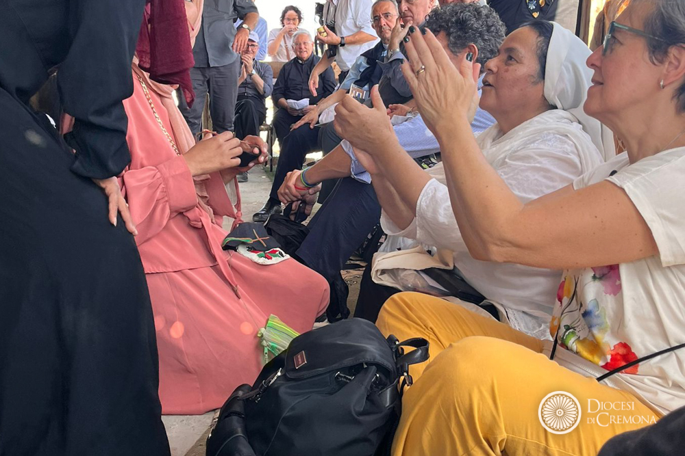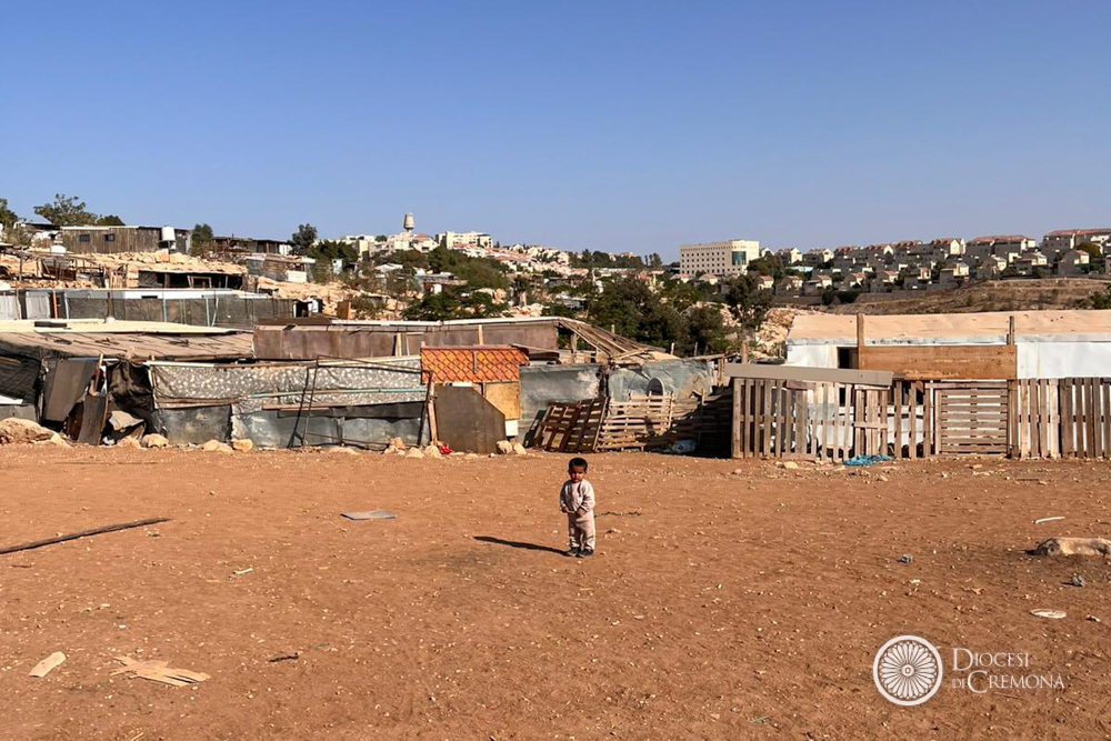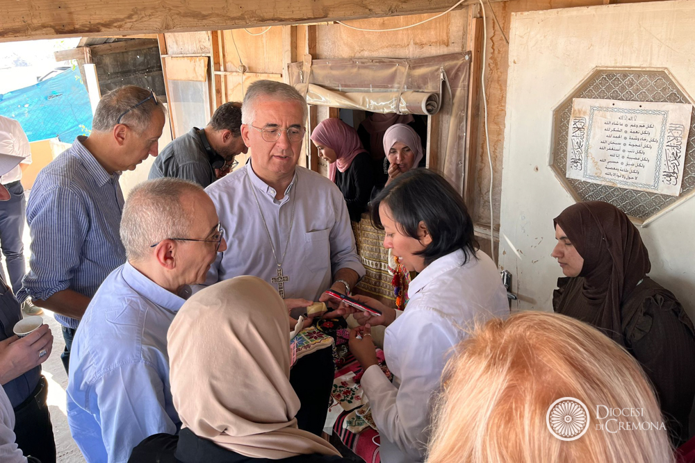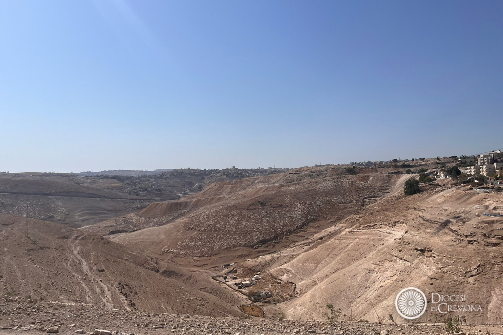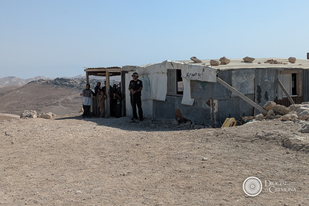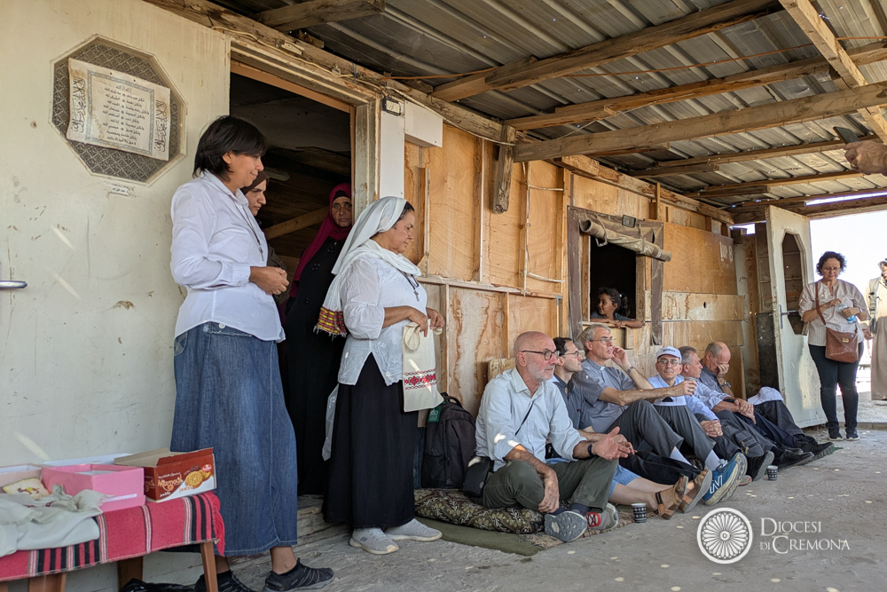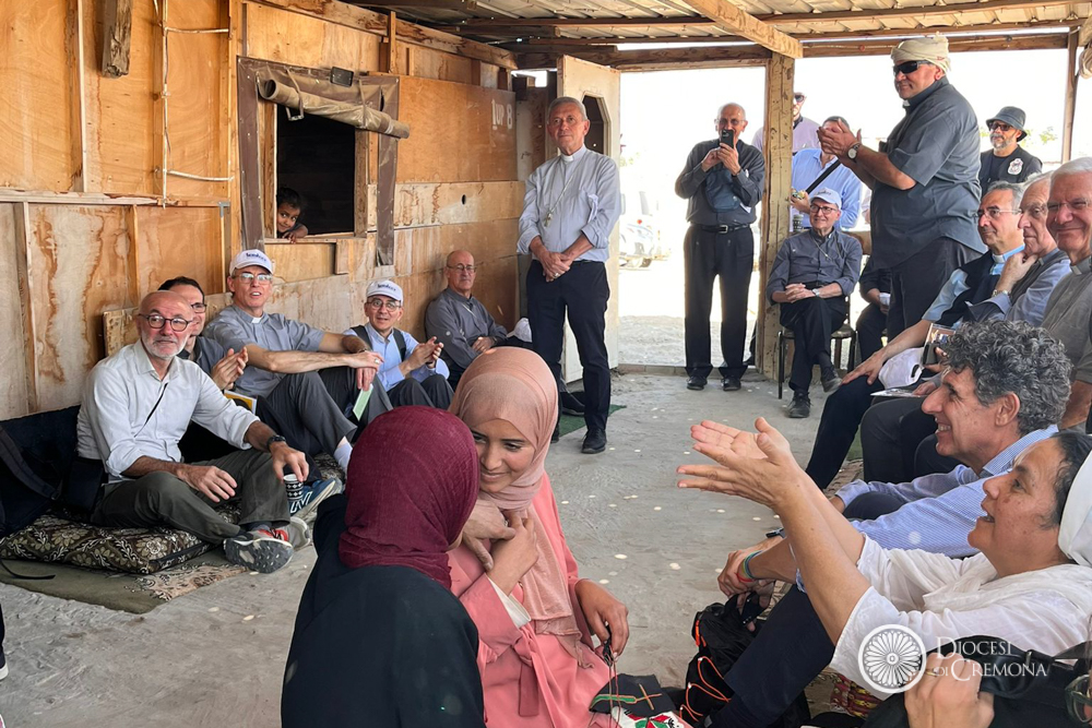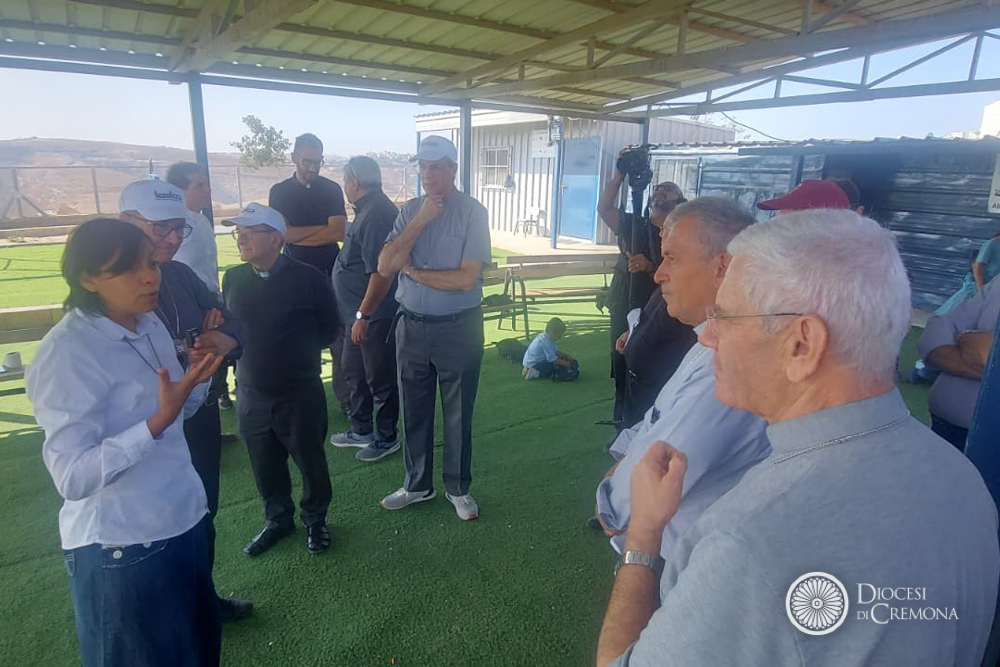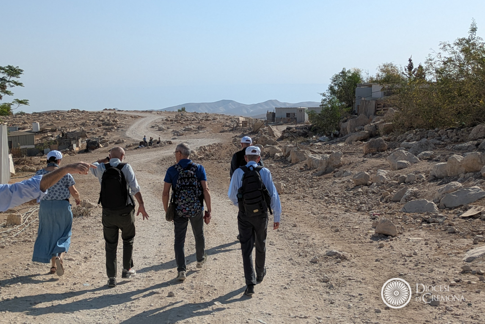 Martedì 28 ottobre, invece, la prima tappa era stata nel Deserto di Giuda, nel villaggio dei beduini di Jahalin, in Cisgiordania, a poche centinaia di metri in linea d’aria da Betania. L’occasione per l’incontro con le Suore Comboniane, il cui operato guarda in ai bambini più piccoli, dai 3 ai 5 anni, e le donne, come hanno raccontato suor Lourdes Garcia e suor Cecilia Sierra (presenti in loco con altri cinque consorelle), entrambe di origine messicana, che hanno accolto i vescovi lombardi in perfetto italiano, insieme al capo del villaggio, Jihan Frenhat. Una testimonianza mossa dalla passione per questa realtà destinata a scomparire secondo i progetti di sviluppo dell’insediamento che sovrasta la collina. Con il progetto «Fili di Pace» offrono un filo di speranza garantendo alle donne corsi di formazione: insegnano inglese, ebraico, qualche nozione di pronto soccorso, la fabbricazione del sapone con latte di capra e olio d’oliva, e soprattutto a cucire e a ricamare, per tenere viva la tradizione del ricamo palestinese, riconosciuto come patrimonio dell’umanità.