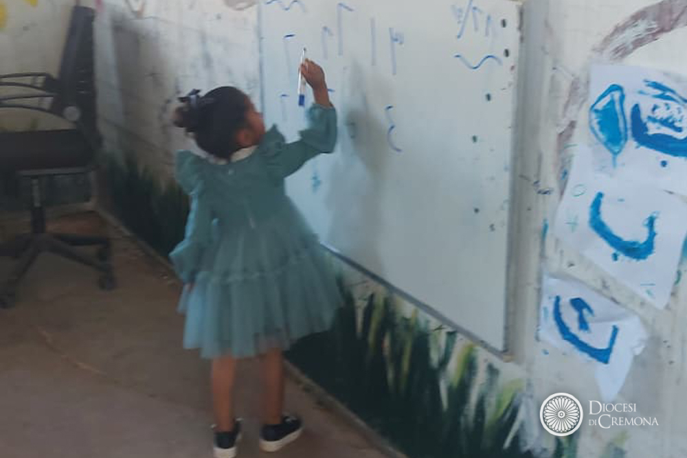 Non è mancata una sosta all’asilo con i più piccoli, l’altra faccia dell’opera delle suore. Sono stati proprio i beduini a chiederci la scuola, come via di riscatto per i loro bambini. Una di loro è la moglie del capo villaggio, Ahmad Frehnat, e parla con grande orgoglio del proprio lavoro: «Questo asilo è l’unica possibilità per questi bambini di avere una prima istruzione e poter iniziare la scuola quando avranno 6 anni».