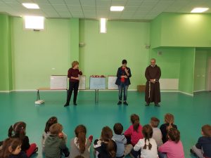 Strettamente legato a questa celebrazione un gesto di generosità che ha coinvolto i bambini e le famiglie della scuola che – riflettendo sulle parole “dacci oggi il nostro pane quotidiano” hanno consegnato 180 confezioni di pane a tre realtà cittadine che si occupano dell’assistenza ai poveri: Il Ponte di via Rialto, la San Vincenzo e ai frati cappuccini di via Brescia. I rappresentanti di queste tre realtà hanno incontrato i bambini nella mattinata di lunedì 15 aprile e raccontato la loro attività.
