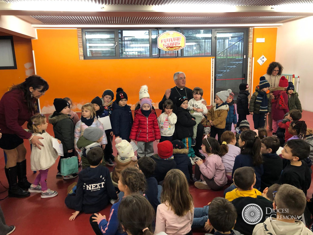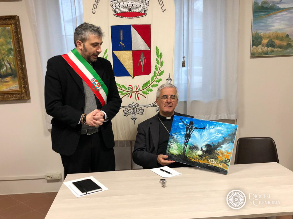Proprio la centralità di Cristo nelle vicende e nelle dinamiche umane di tutti i giorni è stato il messaggio che il vescovo ha voluto sottolineare durante la visita pastorale tra le due parrocchie. Ha incontrato i giovani e gli operatori della eco-company alla Cascinetta di Gerre Borghi e le loro storie, il mondo del lavoro – in particolare quello agricolo – con l’azienda Antonioli (nel giorno di sant’Antonio), quello della scuola tra materna, elementari e doposcuola mettendosi a fare i compiti con i ragazzi. Ha parlato con gli ammalati, i genitori e con la comunità civile con il sindaco di Gerre de’ Caprioli (di cui Bosco è frazione) Michel Marchi e le associazioni “Gianni e Massimiliano”, la Protezione Civile e l’organizzazione di volontariato della “Fèsta de j òof còt” che hanno regalato al vescovo una tela riportante il Cristo del Po del fabbro-vogatore Italo Fornasari.