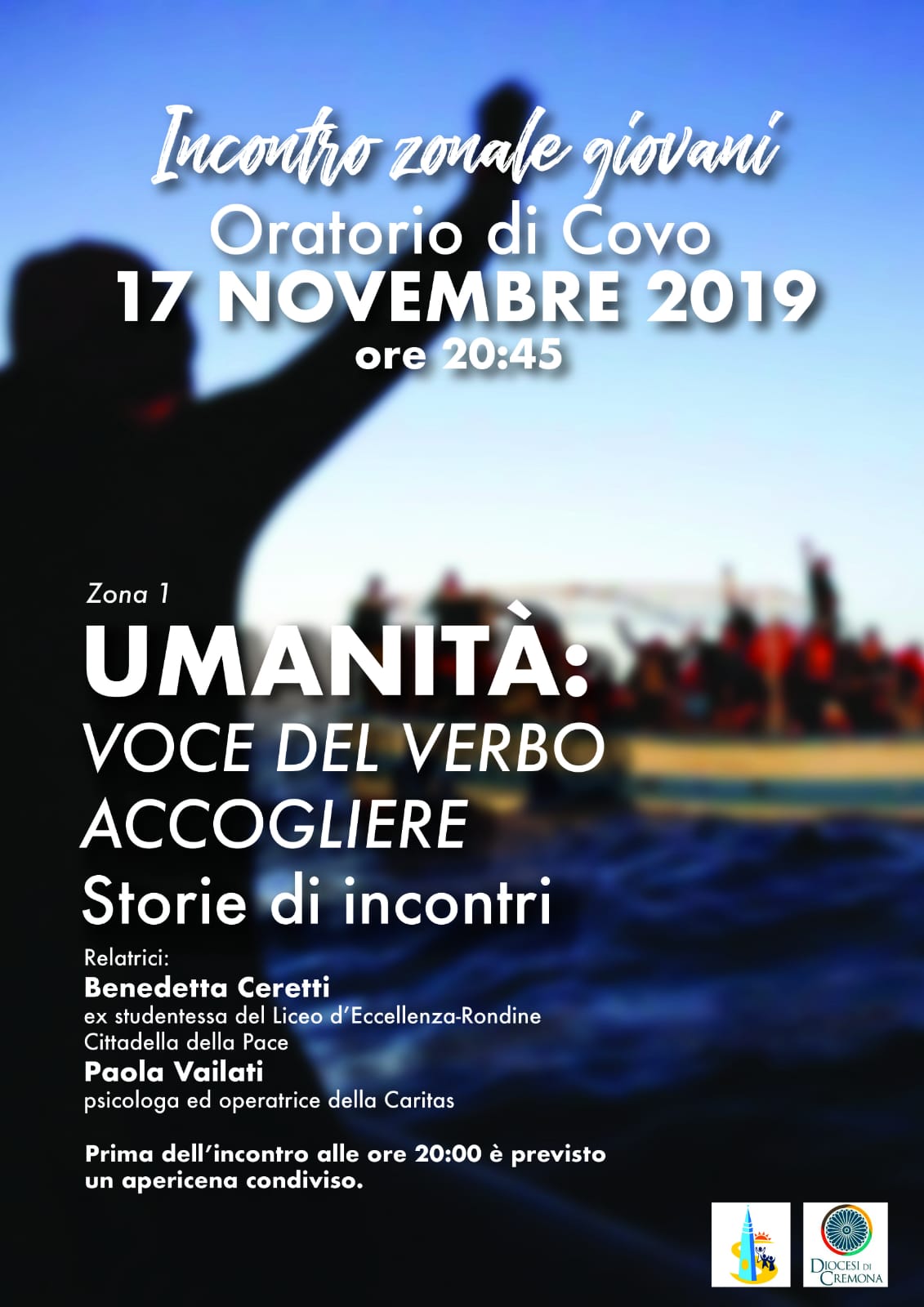 «Umanità: voce del verbo accogliere. Storie di incontri». È questo il titolo che guiderà il primo incontro del percorso per giovani nella Zona pastorale 1.
